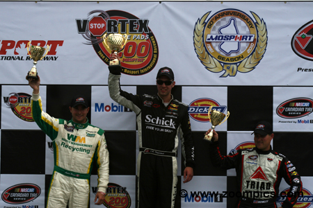 There were some changes to the 2010 schedule. The title chase started in June at Delaware Speedway and was followed by the road course at Mosport. St. Eustache which hosted two rounds last year would only have one event in 2010. After this stop, competitors would make a west coast swing - racing at Vernon, Edmonton and Saskatoon. Then it was back to the east for weekends at Trois-Rivieres, the Mosport oval, Montreal and Barrie. The penultimate round was held at Antigonish, Nova Scotia and the championship would end in late September at Kawartha Speedway. In total, there were thirteen race weekends and the series would visit thirteen different tracks in six provinces. The cars competing in the championship are constructed to specifications and rules common to most stock car series. The chassis is a steel tube frame design covered with a fiberglass body and is required to weigh no less than 3000-lbs. Body styles are from manufacturers such as Dodge (Avenger and Charger), Ford (Fusion) and Chevrolet (Impala SS). Engine type and displacement are dictated by the make and model of the vehicle. The carbureted eight-cylinder motors produce approximately 650-horsepower. Depending on the gearing, these cars are estimated to have a top speed of 160-mph. The Vortex Brake Pads 200 held at Mosport International Raceway was race two of the thirteen contested during the 2010 NASCAR Canadian Tire season. Twenty-six drivers would compete on the ten-turn 2.459-mile road course for fifty-one- laps. |