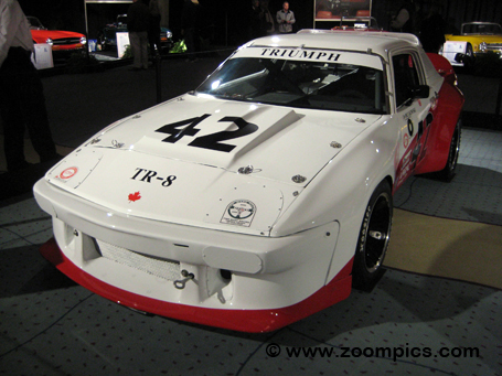 The TR8 was eventually fitted with a 3.5 liter V8. The car on display was one of the first in Canada to be converted to a race car.