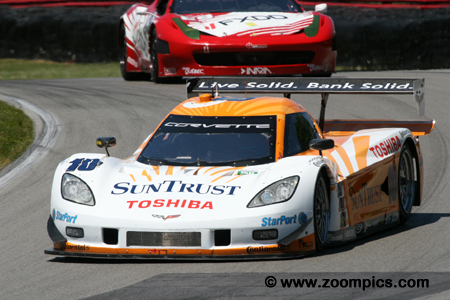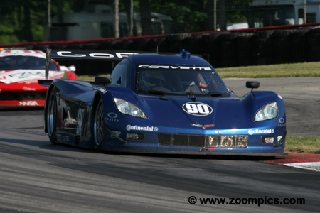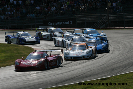 Leading the way is the pole-sitter, Jon Fogarty in the No. 99 Bob Stallings Racing Chevrolet Corvette DP.