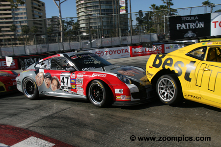 GT and GTS classes are combined to race in 50-minute timed events. The TCB cars run two 25-minute races with a 15-minute break in between to allow crews to make minor adjustments. The following day there is a longer 40-minute race. The Toyota Grand Prix of Long Beach weekend included round three of the 2012 Pirelli World Championship. Thirty-five starters would compete for fifty-minutes of racing around the 1.968–mile eleven turn Long Beach street course. |