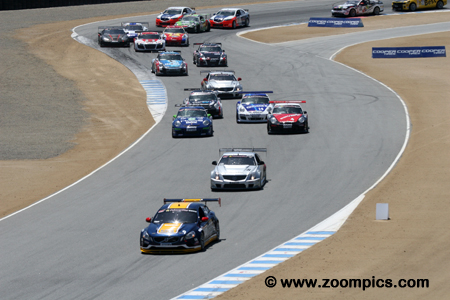 GT and GTS classes are combined to race in 50-minute timed events. The TCB cars run two 25-minute races with a 15-minute break in between to allow crews to make minor adjustments. The following day there is a longer 40-minute race. The fourth round of the 2012 World Challenge Championship was held at Mazda Raceway Laguna Seca. This weekend did not include a race for Touring Car B class. As a result, GT, GTS and TC competed together. A total of forty cars (16-GT entries, 17-GTS entries and 8-TC entries) would race for 50-minutes around the 2.358-mile eleven-turn road course. |