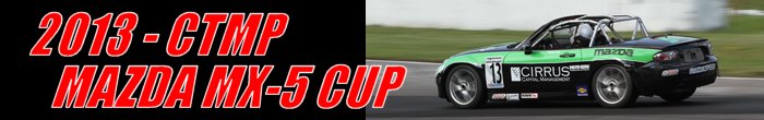 Rounds seven and eight of the 2013 SCCA Pro Racing Playboy Mazda MX-5 Cup were held at Canadian Tire Motorsport Park. Drivers would compete on the ten-turn 2.459-mile road course for forty-five minutes.