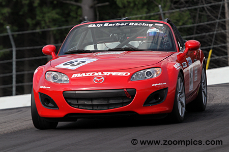 The series is part of the MAZDASPEED Motorsports Development Ladder that promotes champions of the Mazda series to the next level of their career. The motivation for drivers to enter the MX-5 Cup division is an opportunity to earn a factory-supported ride in next year’s SCCA Pro Racing Speed World Challenge Touring Car Championship. All Mazda MX-5 Cup cars receive only minor upgrades. Bolt-on modifications include a new intake manifold and exhaust system, which increases the engine output from 170 to 200-horsepower. All vehicles have a six-speed manual transmission and a limited-slip differential. BF Goodrich tires are mounted on 17X8” wheels. The suspension uses a coil-over kit with double adjustable shock absorbers and roll bars. Brake pads, fluid and lines are upgraded for the demands of racing. The Mazdas are fitted with an eight-point roll-cage welded into the car, racing seatbelts and a fire extinguishing system for safety. In December 2011, it was announced that the series would include a second class. Beginning this year, there is a category for Skip Barber Racing School competitors. The Skip Barber Racing School will provide an arrive-and-drive program in their Mazda MX-5s. The program costs $6,875 for a single race and $50,000 for the entire season of eleven rounds. The cost includes a test day, tires, fuel, entry fees, in car-video and data feedback, in car radio setup and television exposure. The 2013 season consists of twelve forty-minute timed races spread over six weekends. All weekends will be doubleheaders with the exception of Coronado and Houston, which will host a single contest. The first event of the year will be held in March at Sebring International Raceway and the year will end at Road Atlanta in October.