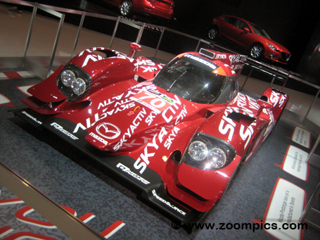 The chassis is a Lola, but the car is powered by a Mazda 2.2 liter diesel engine, which makes 451 horsepower and 580 lb-ft of torque.