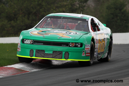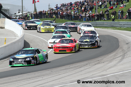 The 2014 championship opened at Canadian Tire Motorsport Park as it had done since 2012. The schedule looked much as it had in 2013. The opening round was followed by two events in Quebec - Autodrome Chaudiere and Circuit ICAR. The series then headed to western Canada and competed at Edmonton International Raceway and the Auto Clearing Motor Speedway in Saskatoon. Then the championship returned to Quebec for races at Autodrome Saint-Eustache and Circuit Trois-Rivieres. Next on the schedule were Riverside International Speedway and the second visit to Canadian Tire Motorsport Park. The season finale was held at Kawartha Speedway. The series cars are constructed to specifications and rules common to most stock car series. The chassis is a steel tube frame design covered with a fiberglass body and is required to weigh no less than 3000-lbs. Body styles are from manufacturers such as Dodge (Avenger, Challenger and Charger), Ford (Fusion) and Chevrolet (Monte Carlo and Impala SS). Engine type and displacement are dictated by the make and model of the vehicle. The carbureted eight-cylinder motors produce approximately 650-horsepower. Round one of the eleven contested during the 2014 NASCAR Canadian Tire season, took place at Canadian Tire Motorsport Park. The race was held in May on the Victoria Day long weekend. Twenty-eight drivers were scheduled to compete for fifty-one laps (201.8-kilometers) around the ten-turn 2.459-mile road course in the Clarington 200. However, a late race caution caused the event to go into overtime and set up a green-white-checkered flag finish. As a result, the contest ran for fifty-four laps. |