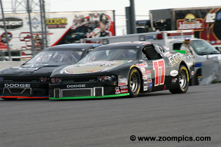 Behind the leaders is Scott Steckly driving the Canadian Tire Dodge and Indy Car veteran, Alex Tagliani.