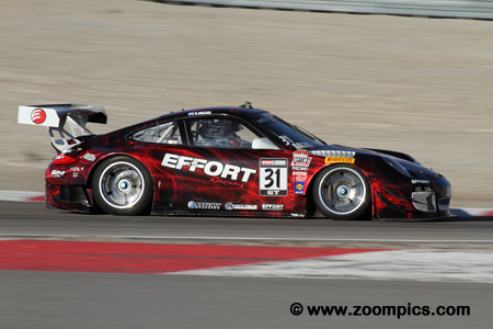 and Andy Pilgrim. Ryan Dalziel driving the Effort Racing Porsche GT3R, at the extreme left, will drop into second