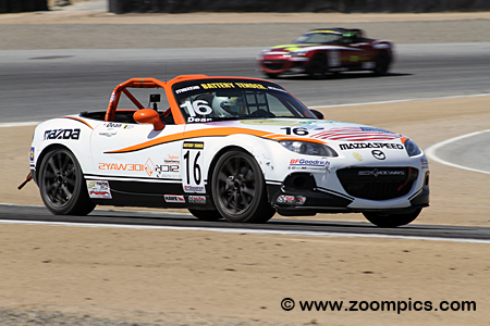 Rounds five and six of the 2015 Battery Tender Mazda MX-5 Cup presented by BFGoodrich Tires were held at Mazda Raceway Laguna Seca. Drivers would compete in two forty-five-minute races around the eleven-turn 2.238-mile road course.