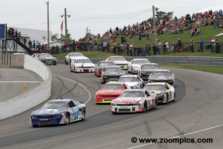 The 2015 championship opened at Canadian Tire Motorsport Park as it had done since 2012. The schedule looked much as it had in 2014 – the exception was the introduction of Sunset Speedway following the closure of Barrie Speedway. The opening round was followed by Autodrome Chaudiere, Sunset, Circuit ICAR, Edmonton International Raceway, Auto Clear Motor Speedway, Autodrome Saint-Eustache, Circuit Trois-Rivieres, Riverside International Speedway and the second visit to Canadian Tire Motorsport Park before ending the season at Kawartha Speedway. The series cars are constructed to specifications and rules common to most stock car series. The chassis is a steel tube frame covered with a fiberglass body that is required to weigh no less than 3000-lbs. Body styles are from manufacturers such as Dodge (Avenger, Challenger and Charger), Ford (Fusion) and Chevrolet (Monte Carlo and Impala). Engine type and displacement are related to the make and model of the vehicle. The carbureted eight-cylinder motors produce approximately 600-horsepower. The NASCAR Canadian Tire Series made their second visit to Canadian Tire Motorsport Park at the end of August. The penultimate round of the championship had a total of twenty-nine starters – ten of which were rookies. As in May, the Clarington 200 would be 51-laps (200-kilometers) around the 2.459-mile, ten-turn road course. |