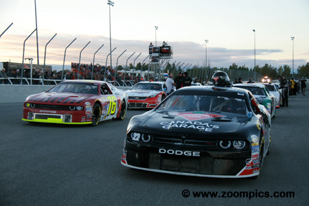 The 2015 championship opened at Canadian Tire Motorsport Park as it had done since 2012. The schedule looked much as it had in 2014 – the exception was the introduction of Sunset Speedway following the closure of Barrie Speedway. The opening round was followed by Autodrome Chaudiere, Sunset, Circuit ICAR, Edmonton International Raceway, Auto Clear Motor Speedway, Autodrome Saint-Eustache, Circuit Trois-Rivieres, Riverside International Speedway and the second visit to Canadian Tire Motorsport Park before ending the season at Kawartha Speedway. The series cars are constructed to specifications and rules common to most stock car series. The chassis is a steel tube frame covered with a fiberglass body that is required to weigh no less than 3000-lbs. Body styles are from manufacturers such as Dodge (Avenger, Challenger and Charger), Ford (Fusion) and Chevrolet (Monte Carlo and Impala). Engine type and displacement are related to the make and model of the vehicle. The carbureted eight-cylinder motors produce approximately 600-horsepower. After eleven races, four drivers had an opportunity to win the 2015 NASCAR Canadian Tire Championship – Scott Steckly, Jason Hathaway, Andrew Ranger and L.P. Dumoulin. Competitors would race on Kawartha Speedway’s 0.375-mile semi-banked oval for 250-laps in the Pinty’s 250 at Kawartha. |