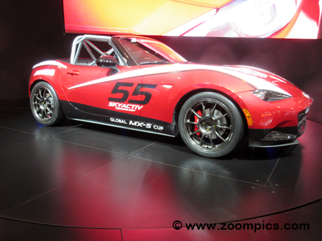 The car on display is set to compete in this year's Battery Tender Mazda MX-5 Cup presented by BFGoodrich Tires.
