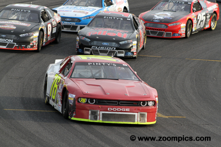 Behind the front row is the local standout, Dwayne Baker driving a Dodge Challenger and 2014 NASCAR