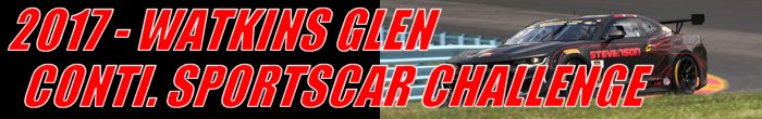 Close competitive racing with cars that fans could relate to contributed to the popularity of the series. It also provided an environment for automotive manufacturers to test and showcase their products. The Watkins Glen race was the fourth event of the 2017 Continental Tire SportsCar Challenge season. Thirty-five entries started the two-hour race on the 3.337-mile eleven-turn road course. Torrential rains and the threat of lightning stopped the race for approximately thirty minutes. With clear skies, the contest was restarted and drivers competed in a twelve-minute sprint to the finish. |