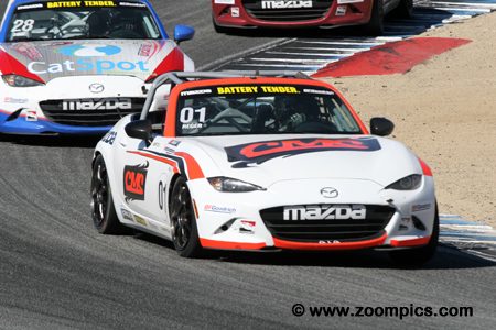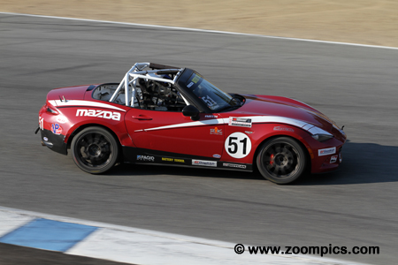 The MX-5 Cup race cars are prepared to series standards by Long Road Racing. The process includes disassembly of the car, welding in a roll cage and the addition of more than 250 motorsports-components. To ensure parity, the SKYACTIV 2.0-liter engine, ECU, six-speed transmission and the limited-slip differential are sealed. The cars can be purchased from Mazda Motorsports for $58,900 USD. The 2017 championship is contested at six different race tracks – Barber Motorsports Park, Indianapolis Motor Speedway, Road America, Streets of Toronto, Watkins Glen International and the finale at Mazda Raceway Laguna Seca. Each race weekend includes two forty-five minute contests. The season ended with Patrick Gallagher taking the championship and earning the $200,000 scholarship to further his racing career. A final event called the Mazda MX-5 Cup Global Challenge took place at Mazda Raceway Laguna Seca on the weekend of October 13-15. It included drivers from the United States, Japan and Europe vying $120,000 in rewards. Competitors would race in two forty-five minutes contests on Saturday. Points were awarded which corresponded to the driver’s finishing position (first – 1-point, second – 2-points, etc.). The racer with the lowest point tally after the two contests would be awarded $75,000. |