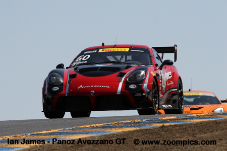 Ian James driving the Panoz Avezzano GT gave notice setting the quickest time in both practice sessions.