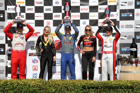 The GTS podium for the 2017 season finale at Sonoma Raceway.