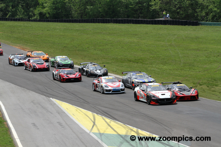 The GTS grid exits Virginia International Raceway’s last turn and lines up for round four’s standing start.