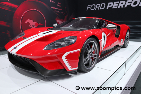 This 2018 Ford GT, the 1967 Heritage Edition, was at the Ford booth.
