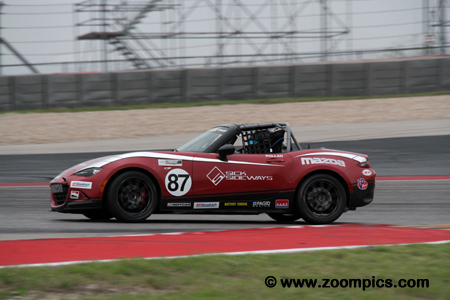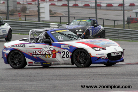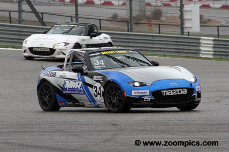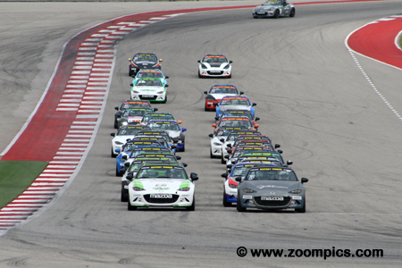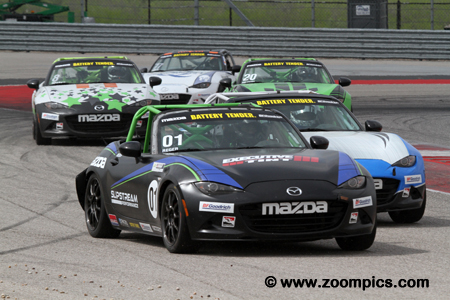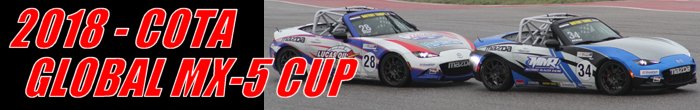 The MX-5 Cup race cars are prepared to series standards by Long Road Racing. The process includes disassembly of the vehicle, welding in a roll cage and the addition of more than 250 motorsports-components. To ensure parity, the SKYACTIV 2.0-liter engine, ECU, six-speed transmission and the limited-slip differential are sealed. The cars can be purchased from Mazda Motorsports for $58,900 USD. The 2018 championship is contested at six different race tracks – Circuit of the Americas, Barber Motorsports Park, Road America, Mid-Ohio Sports Car Course, Portland International Raceway and the finale at the Monticello Motor Club track. Each race weekend includes two forty-five minute contests. And, to motivate drivers and advance their racing career the Global MX-5 Cup champion earns a $200,000 scholarship. There is also a $75,000 Mazda rookie award for 2018. The 2018 Battery Tender Global MX-5 Cup season kicks-off with a doubleheader at Circuit of the Americas. Drivers would compete in two forty-five minute races on the twenty-turn 3.4-mile road course. |