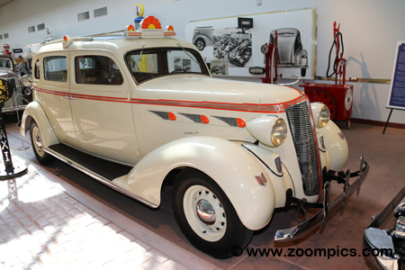 This is a 1936 De Soto De Luxe Airstream Taxicab. It was one of 2,200 De Sotos order by a New York City cab company.