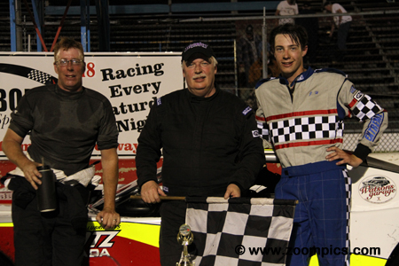 In the center with six-time Super Late Model championships is the winner of the series inaugural race, Glenn Watson.