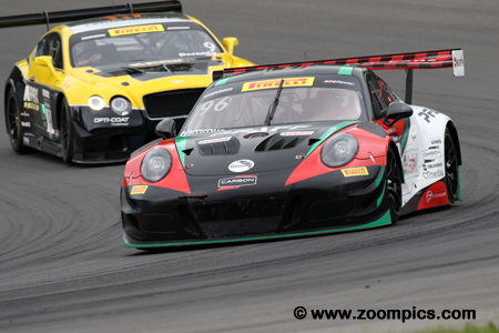 Starting on the pole and pacing the field is Rodrigo Baptista driving the K-PAX Racing Bentley Continental GT3.