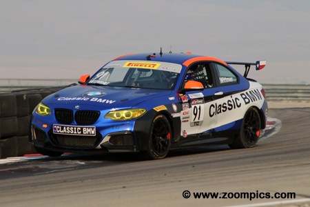 Trailing Kozarov is the third place starter in the Classic BMW prepared BMW M235iR, Karl Wittmer.