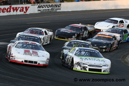 The 2019 season kicks off on the Victoria Day Weekend at Sunset International Speedway. In June the teams will make their way to Flamboro Speedway, Jukasa Motor Speedway and Delaware Speedway. The following month the series will make a second visit to Flamboro. The championship will also return to Jukasa but the race is being held on a Thursday evening. In early August, the drivers and their crews will visit Sauble Speedway for races on Friday and Sunday. The month will end with another visit to Sunset for the penultimate round. The finale will take place at Delaware Speedway. The series cars are constructed to specifications and rules common to most stock car series. The chassis is a tube frame covered with fiberglass bodies. Depending on the engine choice, a car can weigh as much as 2800-lbs. Crate motors from General Motors (GM 604 & GM 602) and Ford (347) are used in the series. To regulate expenses, competitors use a spec tire from American Racer and Bilstein A2 shock absorbers. There are also rules which restrict the options available for transmissions, ignition components, body material, brakes, etc. Cars that qualify in positions one to ten are inverted according to points and season attendance. Before each race, the cars are fitted with a new set of American Racer tires, receive a technical inspection and are impounded until the start of the event. Round nine of the APC season would take place on the 0.333-mile oval at Sunset Speedway. Competitors would race for one-hundred-laps in the AP 100 presented by Pennzoil. The first caution came out on lap-8 but the remainder of the race would run without an incident. |