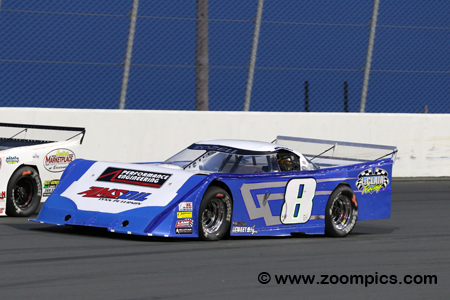 Finishing second in the seventy-five-lap Outlaw Super Late Model contest was the winner’s father, Andy Bozell.