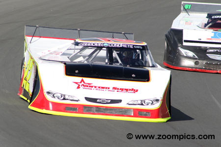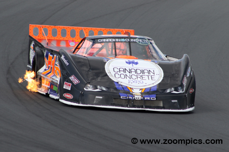 The current Ontario Outlaw Super Late Model point’s leader, John Cadman drove the No. 71 Chevrolet Camaro with backing from the Canadian Concrete Expo.