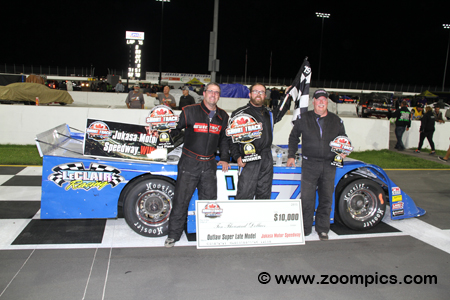 The top-three finishers for the Ontario Outlaw Super Late Model race during the Canadian Short Track Nationals weekend at Jukasa Motor Speedway.