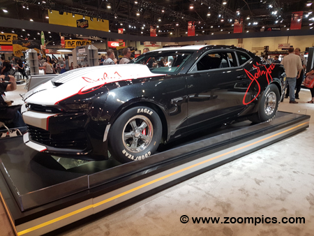 General Motors used SEMA to showcase several of their concept vehicles. This is a 2020 Chevrolet COPO Camaro John Force concept. Chevrolet partnered with a legendary drag racer, John Force, to create this concept Camaro. The car is designed specifically for NHRA competition. An LSX 350-cu.in. supercharged engine powers the base model. An optional naturally aspirated 427-cu.in. motor is also available.