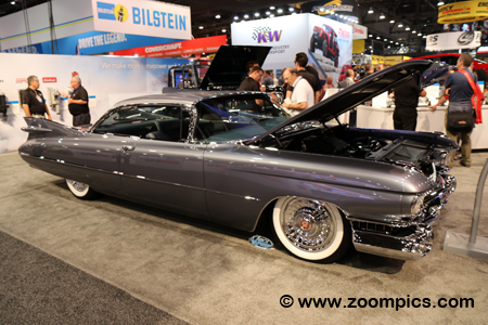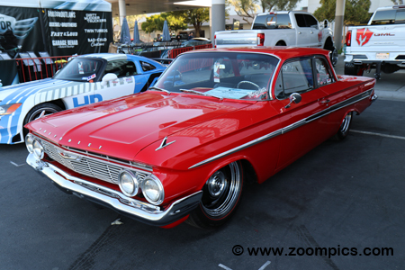Legendary Companies, CEO, Wade Kawaski owns this 1961 Chevrolet Impala. Kawaski, who is also a past SEMA committee member (SEMA Intermediate Chairman) named his Impala, the ‘Red Sled.’ The car features a Ridetech Suspension, Lamar Walden W-Motor, Dual FiTech electronic fuel injection and six-speed transmission. The Red Sled rides on BF Goodrich Redline 245/55R18 tires.