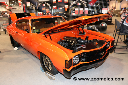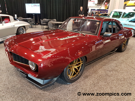 Bradley Gray brought a number of cars to the SEMA show. This 1969 Chevrolet Camaro was sponsored by TSP – Top Street Performance. TSP provides top quality performance auto parts. The powertrain in Gray’s Camaro consists of a blown/procharged 468-cu.in. V8 engine. The power is transferred to a turbo-hydromantic 350 transmission and a twelve-bolt GM rear-end. The paint is Porsche Guards Red and the interior is Allanti Light Sand.
