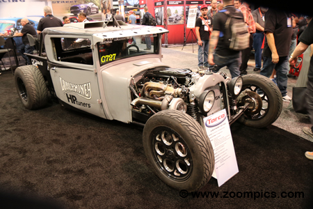 What would the SEMA show be without a few Hot Rods. The Torco Racing Oils and Fuels booth showcased this 1927 Dodge Pickup. Cory Caouette from the Lunch Money Garage gets credit for this build. The engine is a 6.4-liter RHS block that uses LS3 AFR six-bolt cylinder heads. The transmission is an ATI Powerglide. The tires are from Mickey Thompson and of course, the engine and transmission oil are Torco brands.