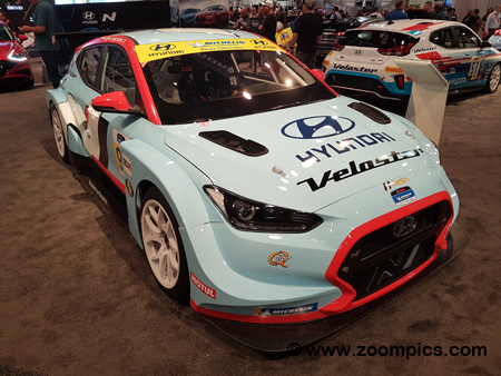 Located in the Hyundai booth was this Veloster Turbo, which is prepared to Touring Car A rules for the SRO TC America series. This particular Hyundai was built by the factory team, Bryan Herta Autosport and will be made available for those teams interested in participating in the championship. This turbocharged Veloster produces 201-horsepower with 195-ft-ibs of torque and is equipped with a six-speed transmission.