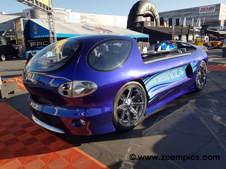 Another of the many ‘Hot Wheels Garage of Legends’ on display at the SEMA show was the Deora II. The Deora II concept car was built in 2003 as a modern interpretation of the original Deora. The original Deora was the brainchild of the first Hot Wheels designer, Harry Bentley Bradley. It was one of the first sixteen original Hot Wheels introduced in 1968. The second version was designed by Nathan Proch and built by Chip Foose.