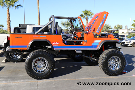This 1982 Jeep Scrambler looks like a lot of fun. It has a serious powertrain which, includes a 425-horsepower 401-cu.in. AMC V8. Dana products are used for the transfer case and front and rear axles. The 40-inch tires are mounted on 20X12 RBP wheels. The Jeep has also been lifted eleven-inches. The interior includes Corbeau seats, a Kicker sound system, AutoMeter gauges and a full roll cage.