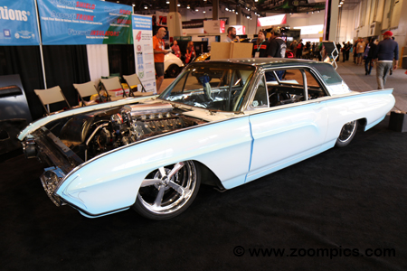 The TikiBird wasn’t completed for the SEMA show but that didn’t prevent attendees from checking out this 1963 Ford Thunderbird. Other than the body, it appears that every original component has been replaced on this car. The custom chassis is fitted with a 1,000-horsepower aluminum V8. Stopping the TikiBird are Willwood 14-inch brakes with six-piston calipers on the front. The Mickey Thompson tires are mounted on Rally wheels.