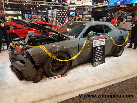 A few days before SEMA, this Challenger was locked in a trailer at a Las Vegas hotel parking lot. Well, a guy stole the trailer and drove the 1,000-horsepower car around Las Vegas. The Challenger was spotted by the Nevada Police and a chase ensued. The police called off the pursuit for public safety. The Challenger was abandoned and found in this condition. They caught the culprit and he has been charged with several offences.