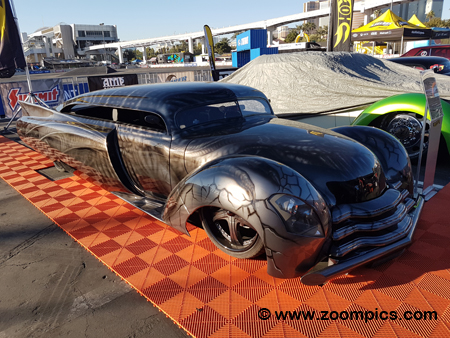 A lot of real estate in the Silver Parking lot was dedicated to the top vehicles from the Hot Wheels Tour. Here is one of many examples named Kargoyle. Mike Calderone bought a 1948 Chevy truck when he was 16-years old and always dreamt of customizing the vehicle. Thirty years later, with a total build time of thirteen-years, the Kargoyle was completed. The front of the car is the Chevy truck and the rear is from a Cadillac.