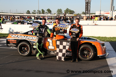 The Super Stock category includes a variety of makes and models from the ‘60s to the current year. The rules used in this class allow some suspension modifications and changes to the bodies. Most Street Stock cars retain the original steel bodies with plastic noses and fiberglass hoods. They are powered by a modified small block engine or crate motors from General Motors and Ford. This division is a popular ‘stepping store’ for those drivers who aspire to compete in the Pro Late Model category. The race at Jukasa Motor Speedway was titled, ‘Prelude to the Nationals’ with the winner earning an automatic entry into the Canadian Short Track Nationals Super Stock event.