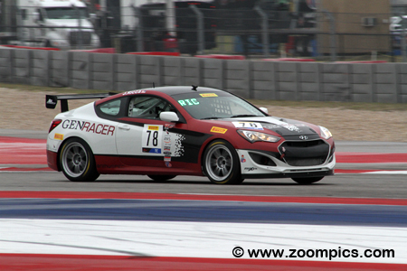 Trailing, Grahovec is Jeff Ricca in the Hyundai Genesis Coupe who was gridded on the outside of the front row.
