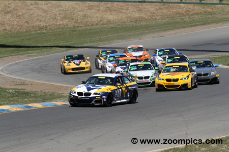 Leading the field is the point’s leader and pole-sitter, Johan Schwartz driving the Rooster Hall Racing prepared BMW M240iR.
