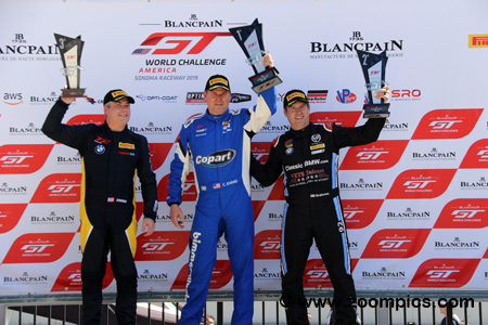 The 2019 round six Touring Car podium at Sonoma Raceway.