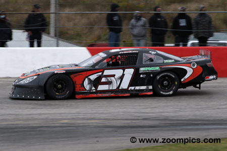 With the outbreak of the COVID-19 virus, Flamboro track management had to enforce pandemic protocols and limit fan attendance, but they succeeded in delivering an exciting event. The Late Model class cars are constructed to specifications and controls common to most stock car series. The chassis is a steel tube frame covered with a fiberglass body. Depending on the engine choice, a car can weigh as much as 2800-lbs. Unlike the popular APC series, this event allowed teams to compete with crate engines or built motors. There are also rules which restrict the options available for transmissions, ignition components, body material, brakes, etc. Unlike the APC series, the starting line-up was not inverted and the grid was set by the fastest qualifying time of each driver. The Frostoberfest Late Model race was a seventy-five-lap contest around the 1/3-mile semi-banked asphalt oval. The total purse was $14,625, with the winner collecting a cheque for $2,000. |