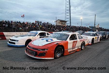 The No. 93 Queenston Chevrolet Buick GMC sponsored Chevrolet Camaro was driven by Flamboro track regular Carson Nagy.