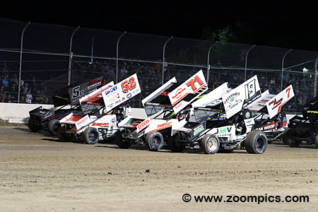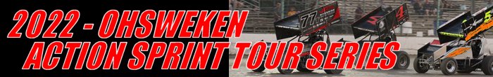 These open-wheel tube frame Sprint Cars are powered by spec engines. Teams must use one of two GM Circle Track Crate Engines – part #88869602 or part #19258602. The motors are equipped with a Holley carburetor fitted on a 350-cu.in. V8 engines which produces 350 horsepower @ 5,400 rpm. The cars are not equipped with a starter motor and require a push to start. The chassis rules are simple. They must be a four-post design and cannot use chassis or suspension cockpit adjustable devices. Brakes are limited to steel or aluminum rotors. Spec Hoosier Tires are mounted on eighteen-inch wide wheels on the right rear and on the left rear; wheels must not exceed fifteen inches. After a race, this competitive package must weigh no less than 1,600 pounds (with the driver and no fuel). The 2022 Action Sprint Tour schedule consists of seventeen events at six tracks. The season starts in June and ends the first weekend of October.