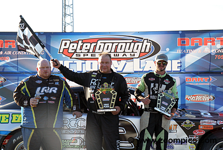 In the center is the winner, Jason Parker, who drove the No. 8 Mowbrays Canadian Tire Chevrolet Camaro.