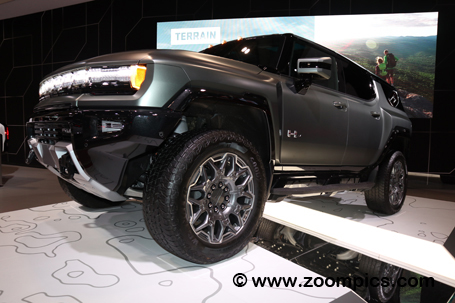 This is the 2023 GMC Hummer EV SUV. The Hummer is powered by three motors producing up to 830 horsepower and 11,500 lb-ft of torque. The truck will accelerate from 0 to 60 mph in approximately 3.5 seconds. The vehicle has a 505 km electric range on a full charge. The EV features an 800V DC public fast charging system. Some of the more unique aspects of the Hummer are Crabwalk, which allows the vehicle to drive diagonally, and Ultravision with underbody cameras. |